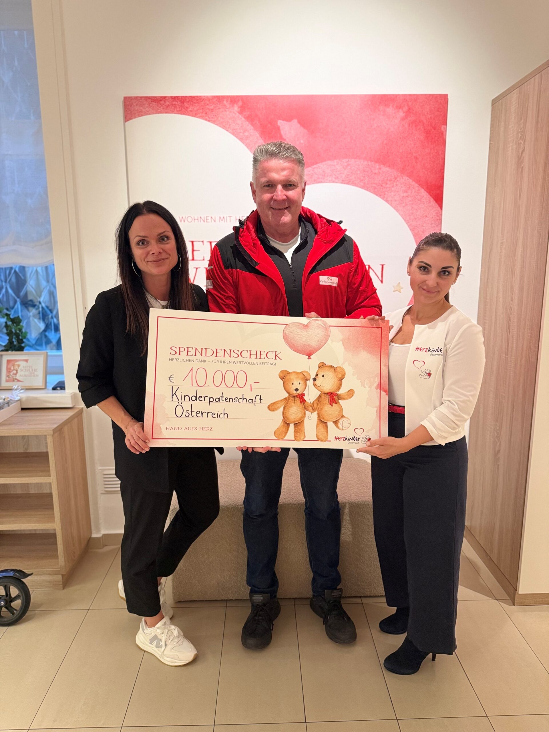 Für große Freude sorgten die Scheckübergaben: Kinderpatenschaft Österreich überreichte 10.000 Euro und die Sportfreunde 1.000 Euro an das Teddyhaus Wien. Hausleiterin Astrid Baumgartner nahm die Spenden gemeinsam mit Natalie Unger entgegen. Zudem erreichte das Teddyhaus eine anonyme Spende in Höhe von 5.000 Euro.
